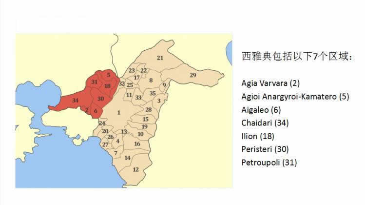 雅典位于北緯38°02', 東經(jīng) 23°44',所處時(shí)區(qū):UTC/GMT +2 小時(shí) (東二區(qū))。地處阿提卡的中心平原地帶,四周群山環(huán)繞。西面是艾加里奧山,北面是帕尼薩山,東北面是彭特里山,東面是伊米托斯山,西南面則是圣羅尼克灣。